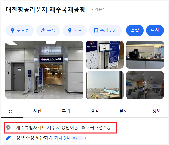 1) 제주공항 대한항공 라운지 정확한 위치