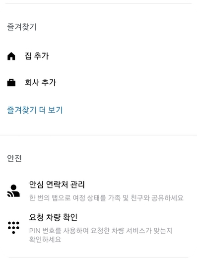 - 여정 상태 공유 : 운행 중 한 명 이상의 연락처와 실시간 위치 공유 가능