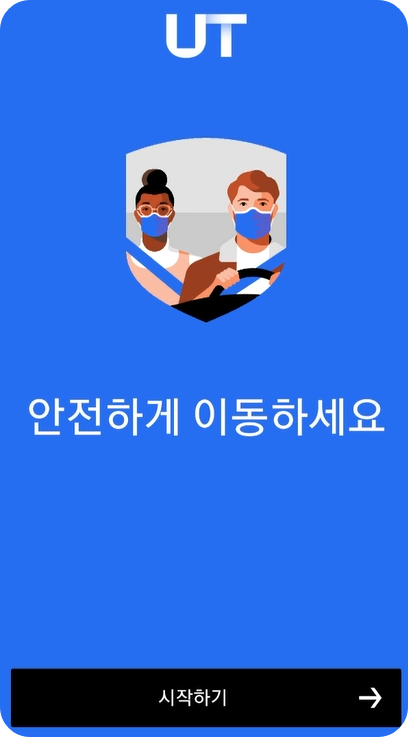 설치된 우티 앱을 열기해서 시작한 후, 기기 위치 액세스 허용이 필요합니다. UT의 첫 화면이 보이면 시작하기를 바로 눌러주십시오.